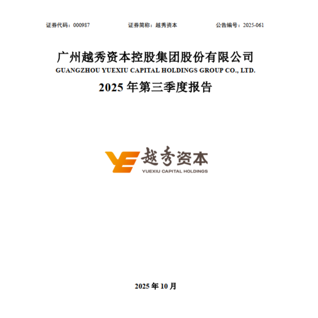 廣州越秀資本控股集團股份有限公司 2025年三季度報告